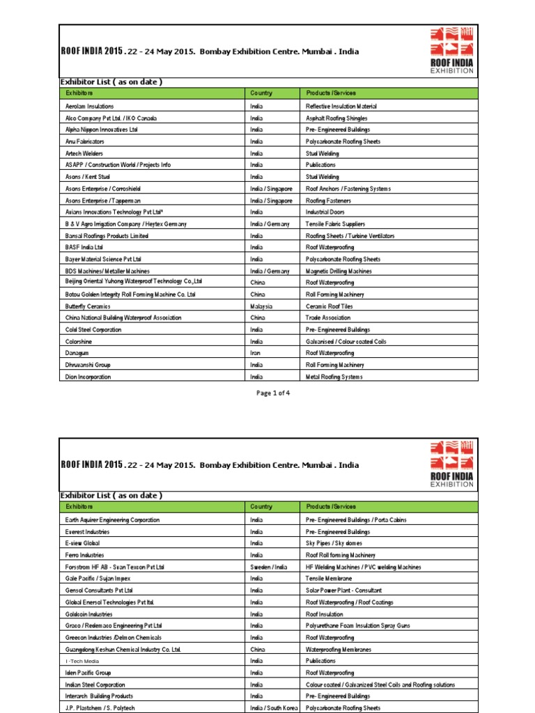 Roof india exhibitor list.